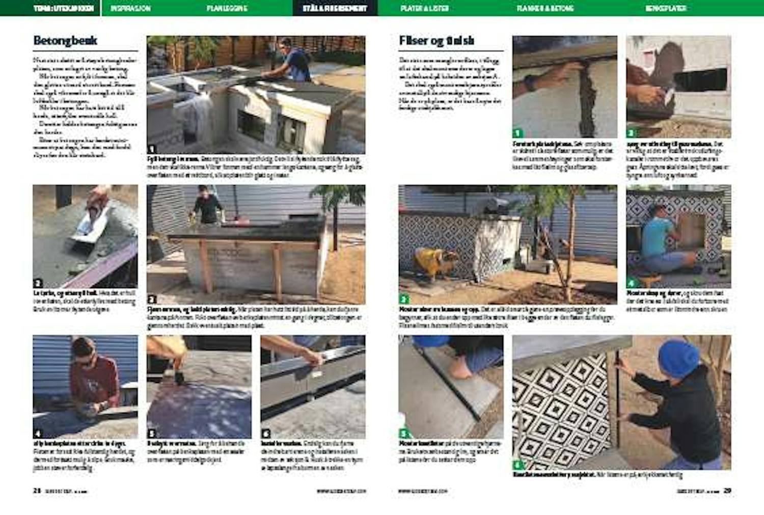 Det skal også monteres hjørneprofiler av metall på de utvendige hjørnene. Når de er på plass, er det bare å nyte det ferdige utekjøkkenet.