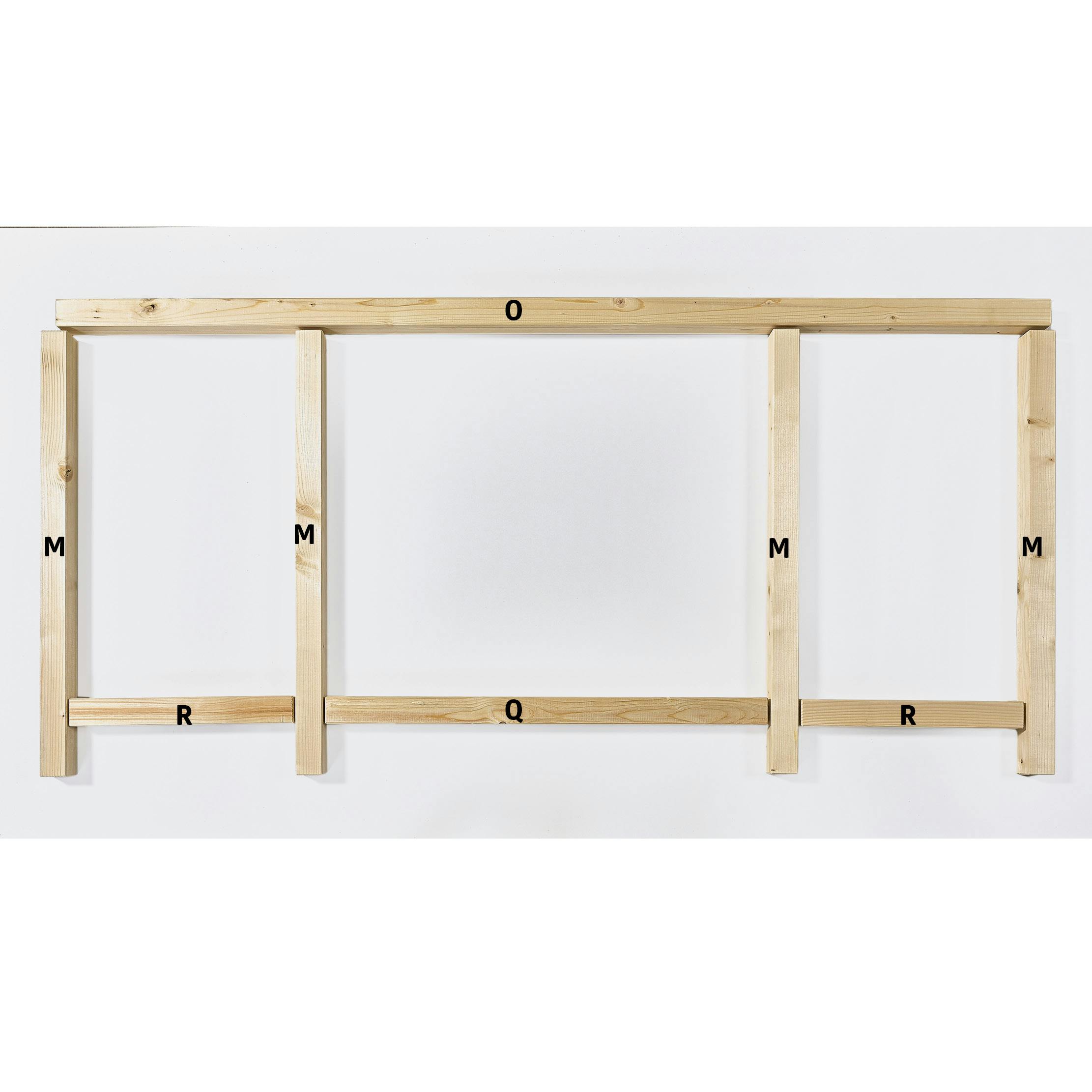 Nå kan du sette sammen hoveddelene. Lag først de to brede sidene til det store understellet. Den ene siden består av fire lange bein (M), en lang overligger (O), en lang forbinder (Q) og to mellomlange forbindere (R). Alle sammenføyninger gjøres på samme måte, det vil si først plugger og lim og deretter en 5 x 80 mm skrue fra motsatt side, som proppes igjen hvis den er synlig.