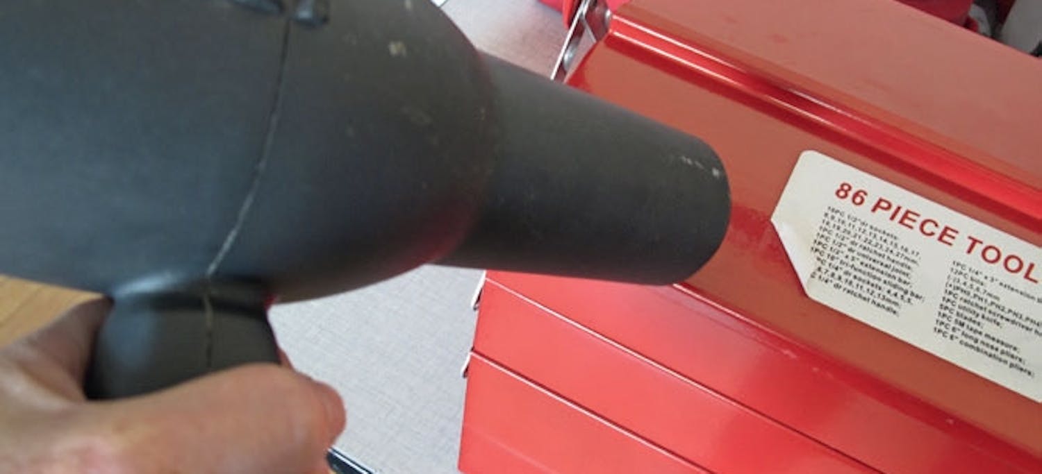 Du skal bruke en varmepistol og trekke forsiktig i et hjørne mens du varmer opp. Du skal dog være litt forsiktig, for klistremerket skal kun varmes opp nok til at limet myknes opp. Det skal ikke ta fyr i papiret eller i malingen under etiketten.