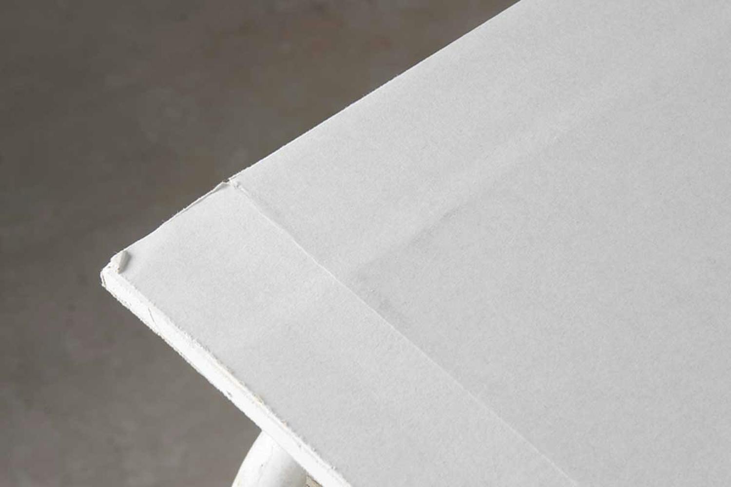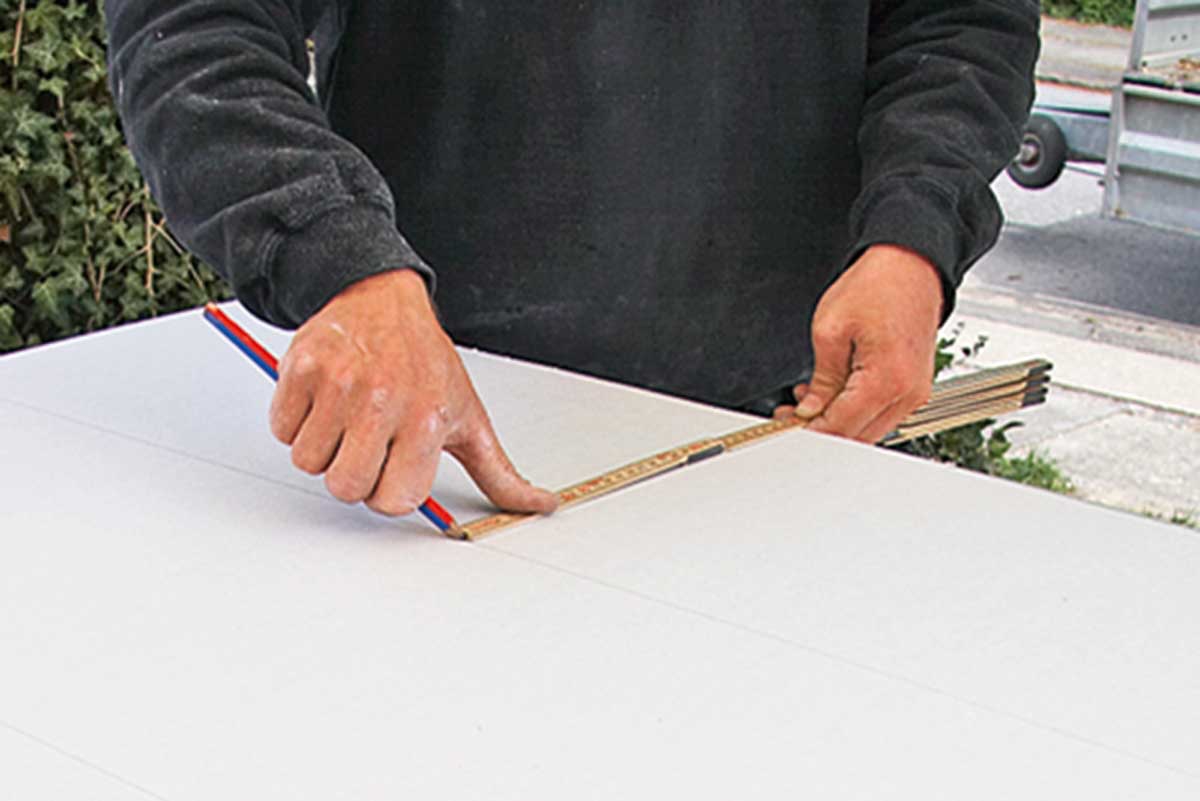 Gipsplater er utstyrt med forsenkede sparkelkanter, fordi de skal kunne møtes sparkelkant mot sparkelkant, slik at det dannes en fordypning du kan sparkle i. Men hvis platen skal støte mot et hjørne, har du ikke bruk for sparkelkanten. Tvert i mot vil det bare bety at den må fylles opp med sparkelmasse på et sted det er vanskelig å sparkle pent. Så skjær vekk sparkelkanten på de platene som skal settes mot et hjørne.