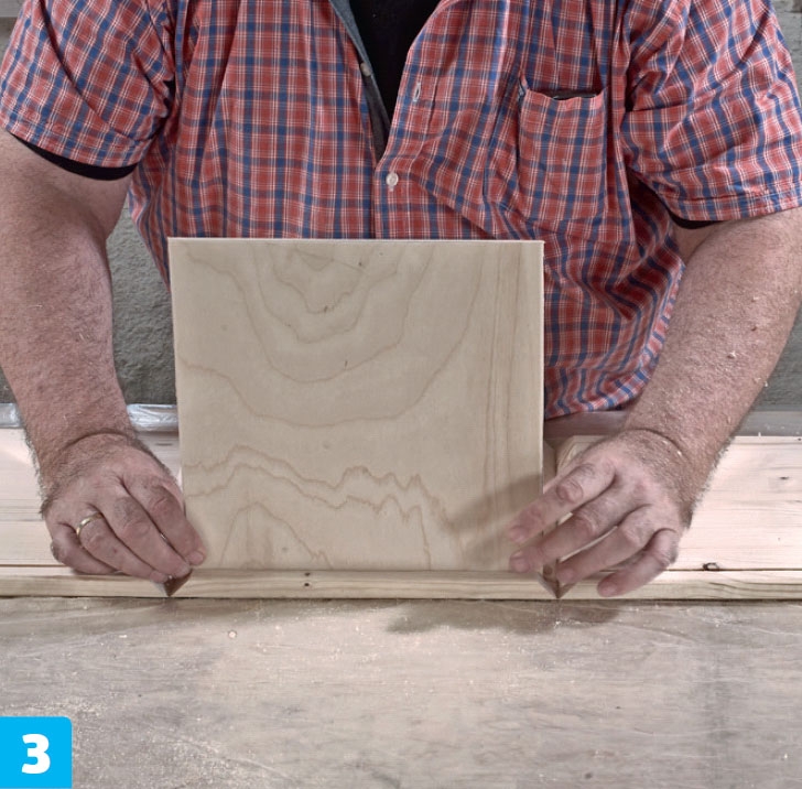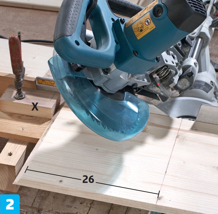 Lengdemålene er innvendige mål. Når du har satt en stoppkloss i riktig avstand fra sagbladet, skjærer du raskt ut en hel rekke like plater.