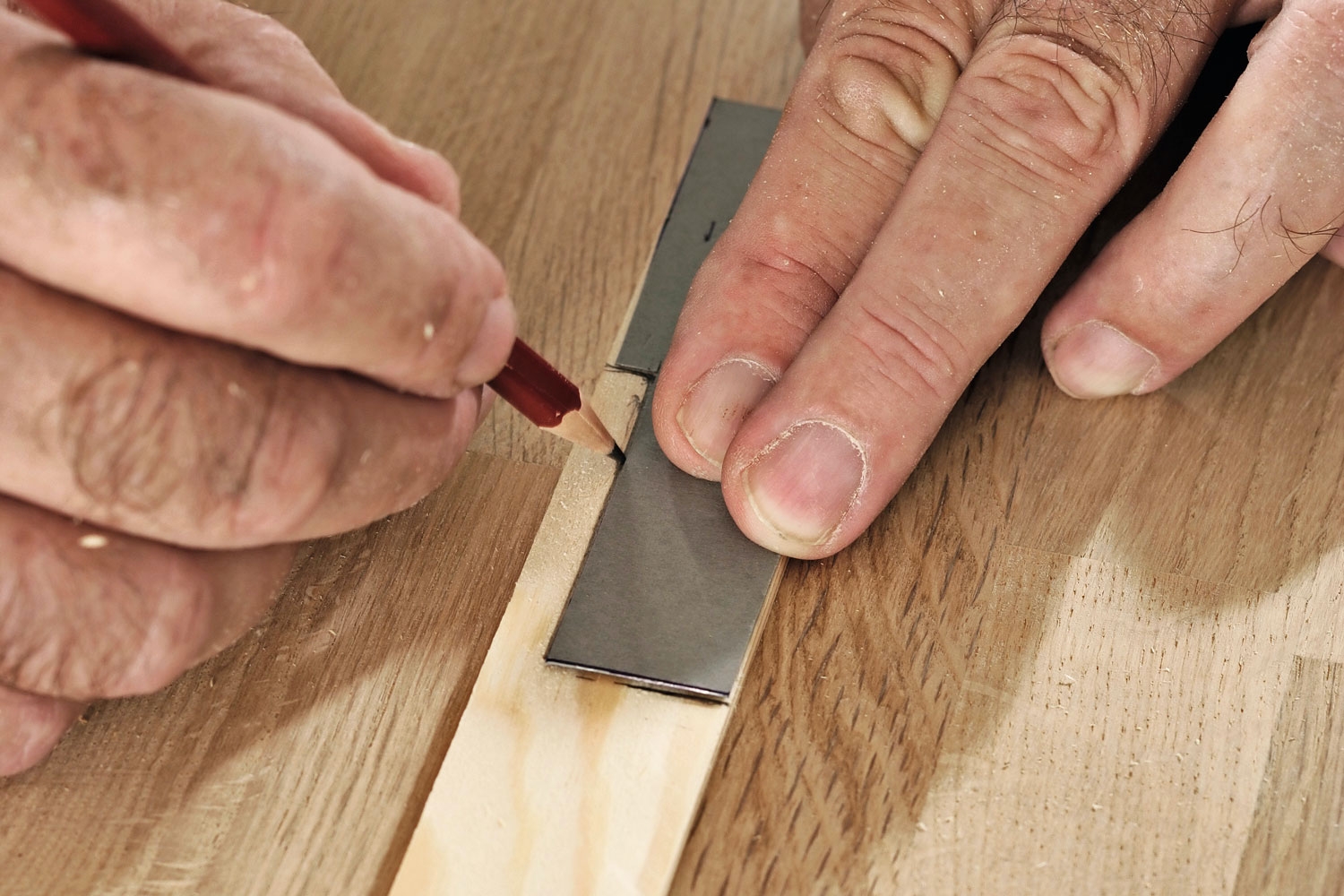Mål opp hullet, og lag en mal av en bit papp. Strek opp malen på en list som passer i tykkelsen der hengslene satt. Sag ut lusen, og lim den fast i utstemmingen, der hengselet har sittet. Gi den også et par små, diskrete dykkert for å være sikker på at den blir sittende i dørkarmen.
