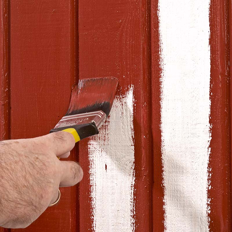 Når du maler friskt treverk, kommer du langt raskere frem til en jevnt farget overflate hvis toppmalingen hjelpes på vei av en hvit eller lysegrå grunningsmaling, som binder bedre til fibrene og dekker trestrukturen mer effektivt.