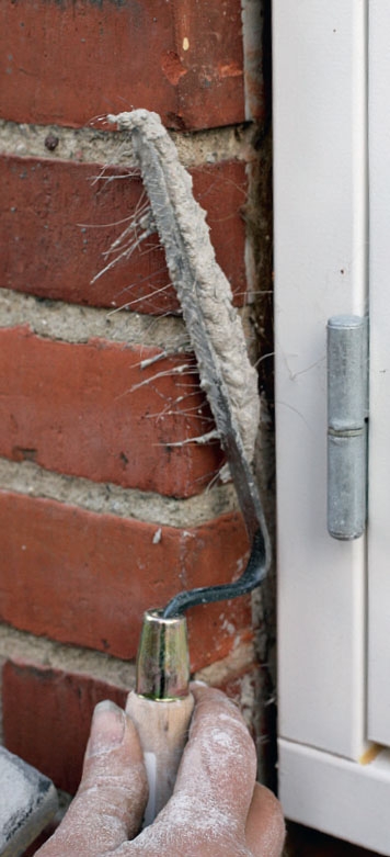 Ved utvendige fuger rundt dører og vinduer bør du helt glemme fuge pistolen. Utvendige fuger skal være diffusjonsåpne, og det er det ingen fugemasser som er. Et enkelt alternativ til mørtelfuger er de selvklebende skumtetningsbåndene, som er komprimert i en rull og klebes på den ene siden i fugen, deretter utvider de seg og tetter helt. I varmt vær går det raskt, med kaldere bånd rekker du å bearbeide det.