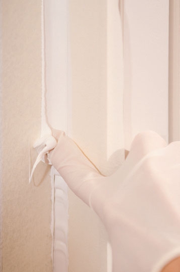 Gummifuger av silikon, MS-polymer og polyuretan bør formes med en fugepinne. Start med å dytte den gjennomvætede og skarpslipte pinnen fremover, slik at fugemassen trykkes tett ned i fugen, og det overskytende materialet “skjæres” vekk. Deretter glattes fugen ved å trekke pinnens runde såle motsatt vei.