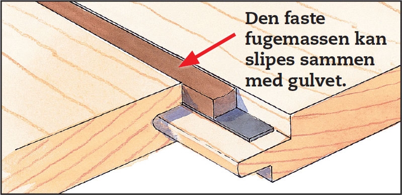 Til fuger i skipsgulv brukes i dag nesten utelukkende MS-polymer i utgaver som blir så harde at de kan slipes sammen med gulvet. Men gummifugen skal samtidig kunne bevege seg og sikre at gulvet forblir tett når treet utvider seg og trekker seg sammen. Derfor er det også her viktig at fugemassen bare hefter på sidene og ikke i bunnen. Det sikrer du med en spesiell fugeteip, som massen ikke hefter på. Strimmelen fås i flere bredder og er selvklebende.