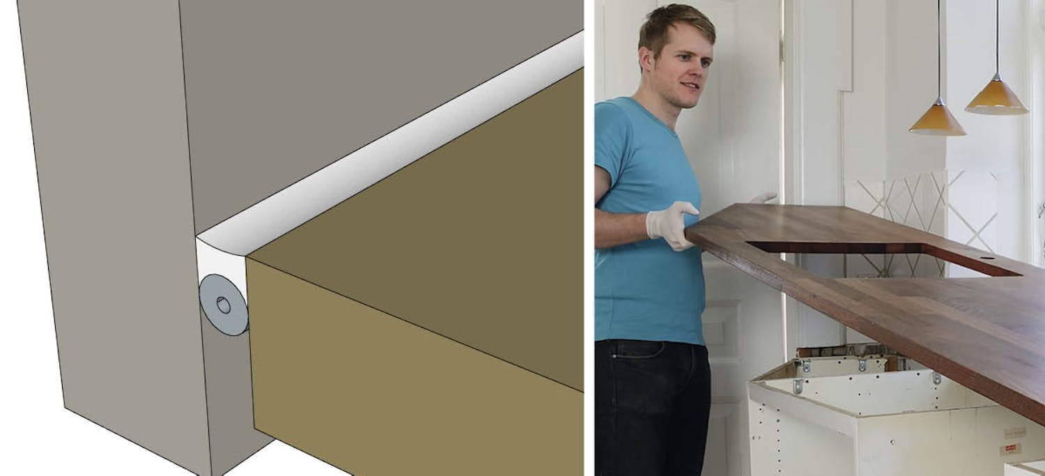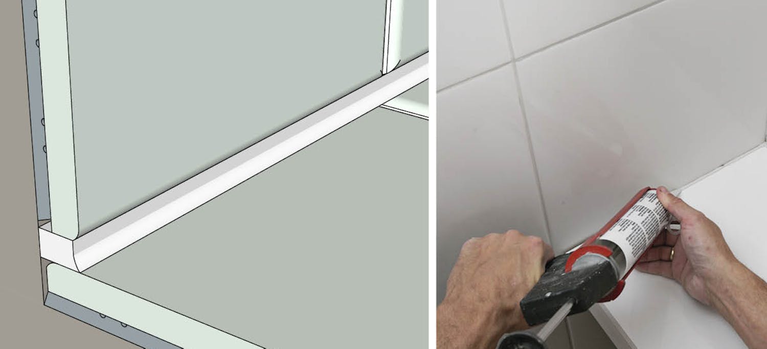Elastiske fuger må planlegges fra starten av. Hvis du for eksempel ønsker en tett overgang mellom benkeplate og vegg, må du montere benkeplaten slik at det blir plass til en god, bred elastisk fuge. Sørg for at det er minst 5 mm luft mellom benkeplaten og veggen for å få plass til en rund fugebunn og skape en elastisk og holdbar fuge.