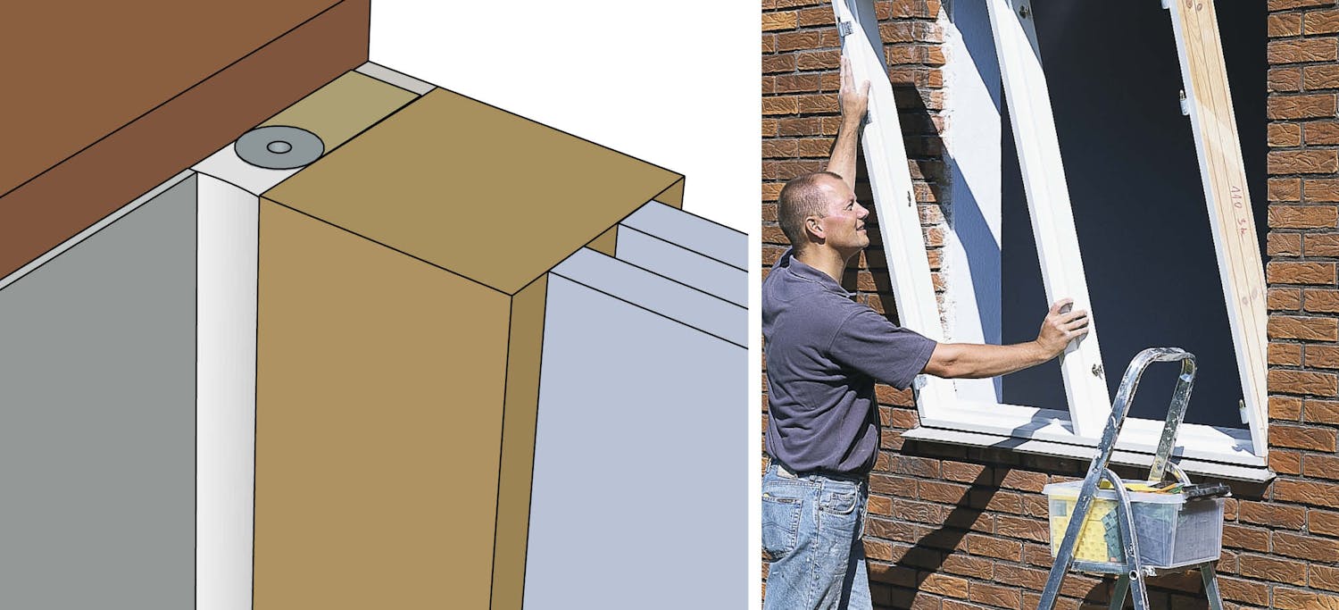 Fugen rundt vinduer og dører må tilpasses de forskjellige måtene karm og murverk beveger seg på. På innsiden, der det skal kunne males, bygges det opp en gummifuge på et rundt fugebakstopp – og kun ved hjelp av en fugepinne. På utsiden skal fugen ikke være tett. Den lages med en mørtelfuge eller diffusjonsåpent fugebånd.
