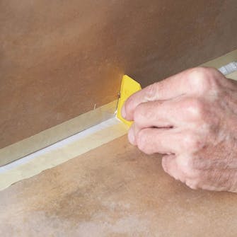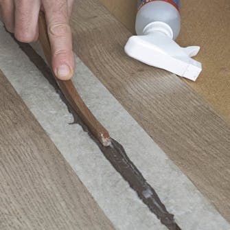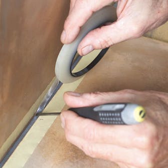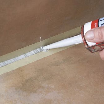 Legg et delt stykke bakstopp eller slippteip i bunnen av fugen. Dekk til på begge sider av fugen med maskeringsteip.