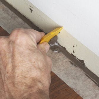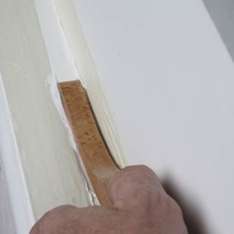 Gjør som maleren: Fyll de små sprekkene mellom de ulike bygningsdelene med en myk akrylmasse før du maler. Fyll sprekkene og glatt ut overflaten med en fugebrikke, en pensel eller fingeren. Unngå å bruke vann. Fjern søl forsiktig med en fuktig klut.