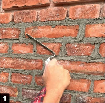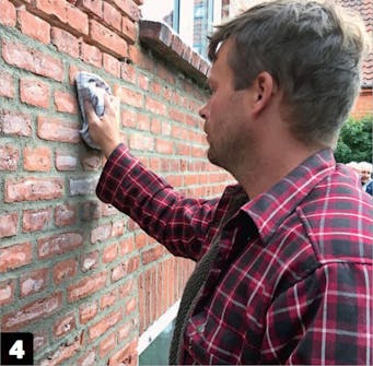Børst alle overskytende sandkorn av mørtelen med en tørr klut eller en murerkost. Det skjuler seg forbausende mange sandkorn på murverket, som du ikke kan se med det blotte øye.