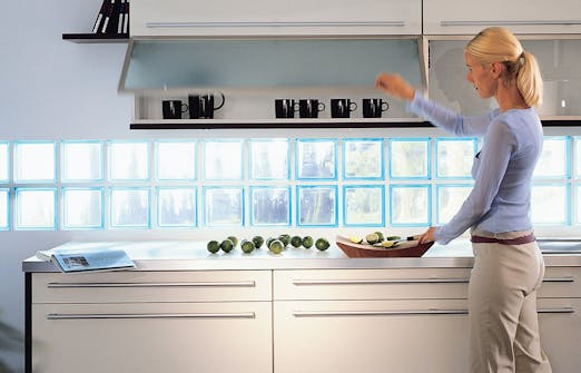 Det gir både mer lys og en fin effekt hvis du benytter glassbyggestein i innvendige vegger. Du kan for eksempel lage et slags innvendig vindu med en kvadratisk form. Eller du kan legge inn et par rekker med glasstein i en vegg - midt på eller øverst. Men uansett hva du velger, skal du være oppmerksom på at glassbyggestein ikke må utsettes for bærende belastning.