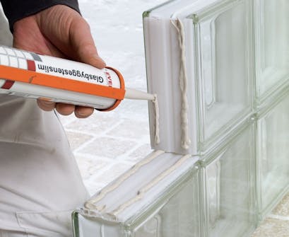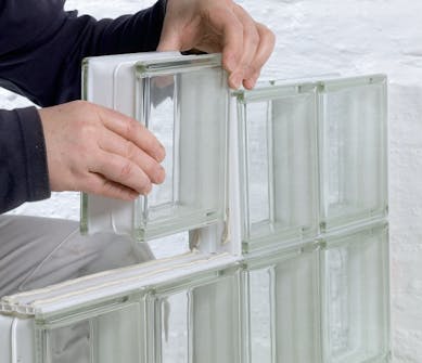 En mur av glassbyggestein kan også bygges opp med mørtel. Men det krever flere pauser underveis slik at mørtelen får tid til å tørke. Vil du lage en buet mur, krever det at du bruker mørtel.