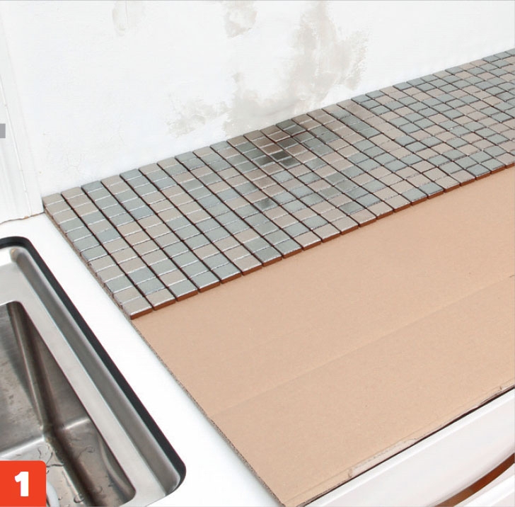 I stedet for å sette en list mellom benkeplaten og mosaikkflisene, lager vi en elastisk gummifuge. Den er elegant og enkel, og den hindrer effektivt vann i å renne ned bak benkeplaten.