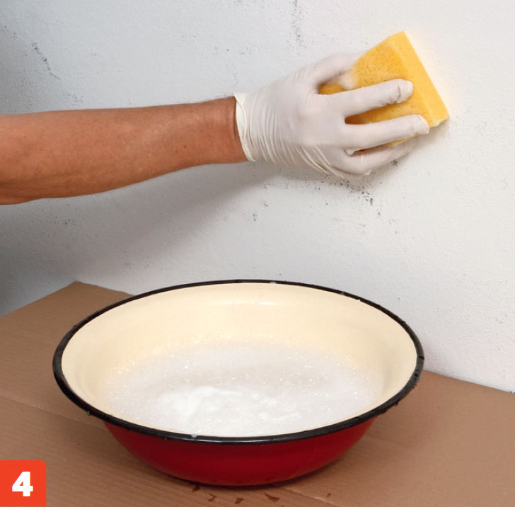 Rengjør veggen grundig. Veggen skal vaskes nøye ren for fett- og såperester. Det gjør du med en kraftig blanding av grunnrengjøring og skuresiden på en svamp. Vask etter med rent vann, og tørk veggen godt.