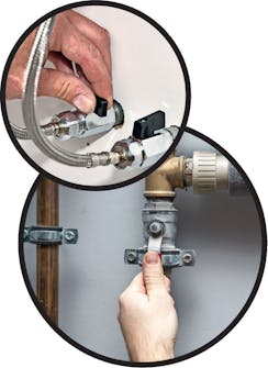 Før du eventuelt åpner for vannet igjen, skal du ha stoppet lekkasjen. Kanskje er du så heldig at du kan stenge deler av vannet ved hjelp av en lokal stoppekran.