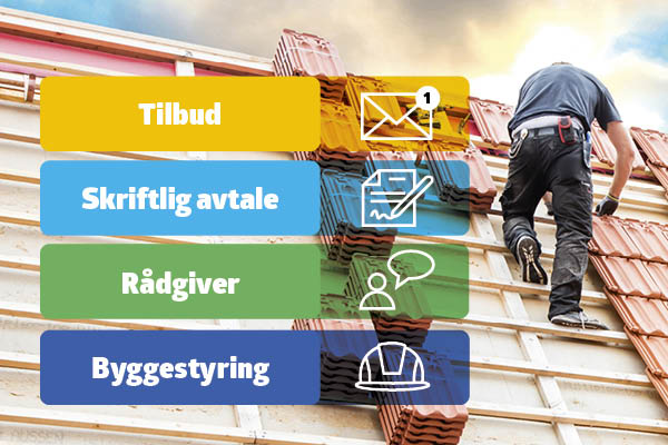 Jo større, dyrere og mer kompleks en oppgave blir, desto større behov er det for klare avtaler for å unngå misforståelser. Her er standardavtalen du kan finne på Forbrukerrådets nettsider til god hjelp. Det er en kontrakt, som er utarbeidet i samarbeid mellom Standard Norge, Forbrukerrådet, Boligprodusentenes Forening, Forbrukerombudet, Husbanken, Huseiernes Landsforbund, Maler- og byggtapetsermestrenes Landsforbund, Norges Byggmesterforbund, Norges Huseierforbund, Norske Rørleggerbedrifters Landsforening – VVS og Norsk Teknologi.