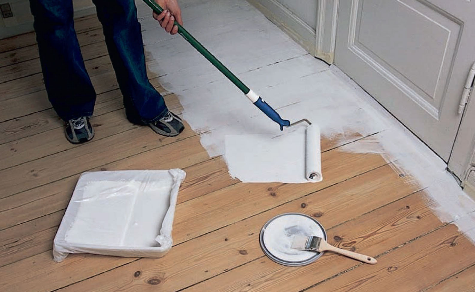 Det er nærliggende å finne frem kneputene og legge seg ned på alle fire når gulvet skal males. Men investerer du i stedet i et teleskopskaft til malerrullen, kan du skåne ryggen og male gulvet stående.