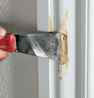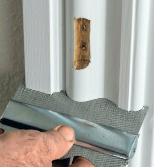 Et slikt hull, som altså går helt gjennom, er det meningsløst å sparkle ut. Det vil gå med altfor mye sparkelmasse. I stedet skal du lage en såkalt lus.