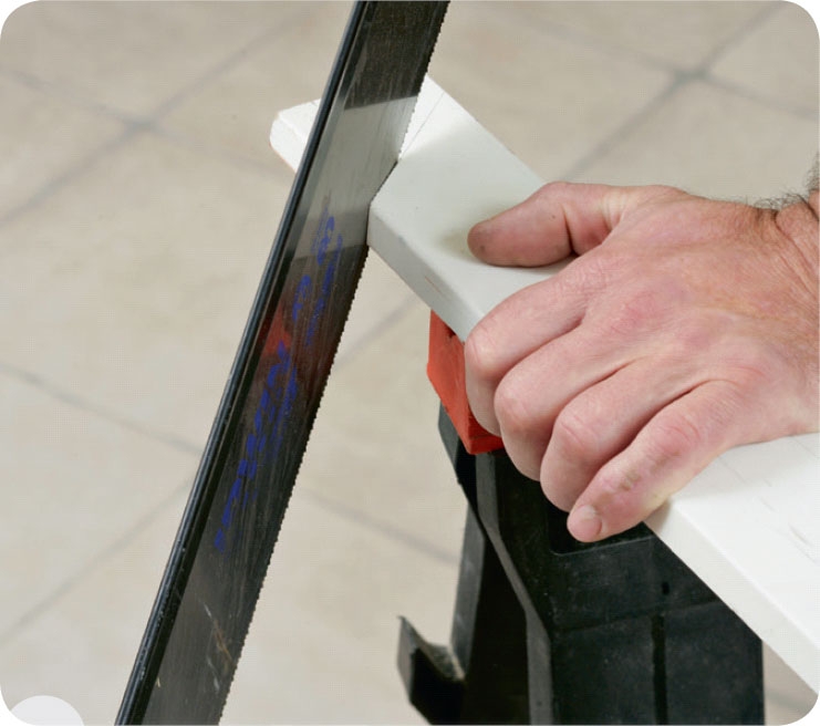 Sag langs streken, enten med en fintannet sag eller en kapp-/gjærsag. Hvis du sikter så bare halve streken blir igjen, blir snittet helt perfekt.