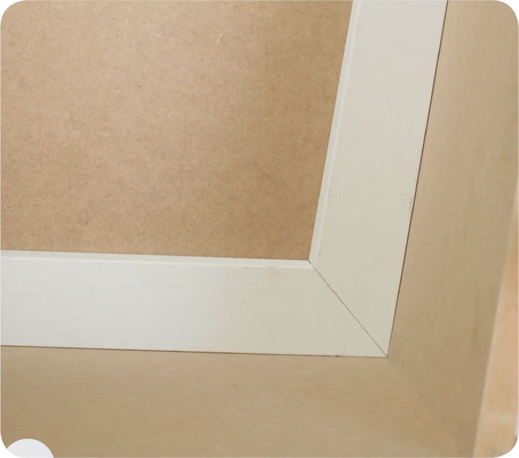 Dette hjørnet mot taket, er langt fra 90 grader. Kapper du listene på skrå i 45 grader, får du ikke et pent resultat. Begge må kappes i en annen vinkel. Først skal vi finne ut i hvilken vinkel.