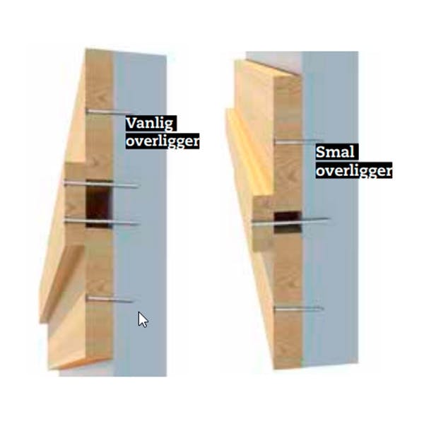 Når du lager en konstruksjon som skal kles med under- og overliggere, er det viktig at du plasserer spiker og skruer riktig. Skruene eller spikerne i overliggerne skal ikke gå gjennom underliggerne. Gjør de det, kan ikke bordene bevege seg i forhold til hverandre. Dermed vil kledningen sprekke når den enten utvider seg, eller trekker seg sammen, i takt med varierende luftfuktighet. Derfor skal de nederste bordene skrus eller spikres hver for seg. Det er viktig at overliggerne festes med skruer eller spiker som går ned i mellomrommet mellom underliggerne på hver side, slik tegningen viser.
