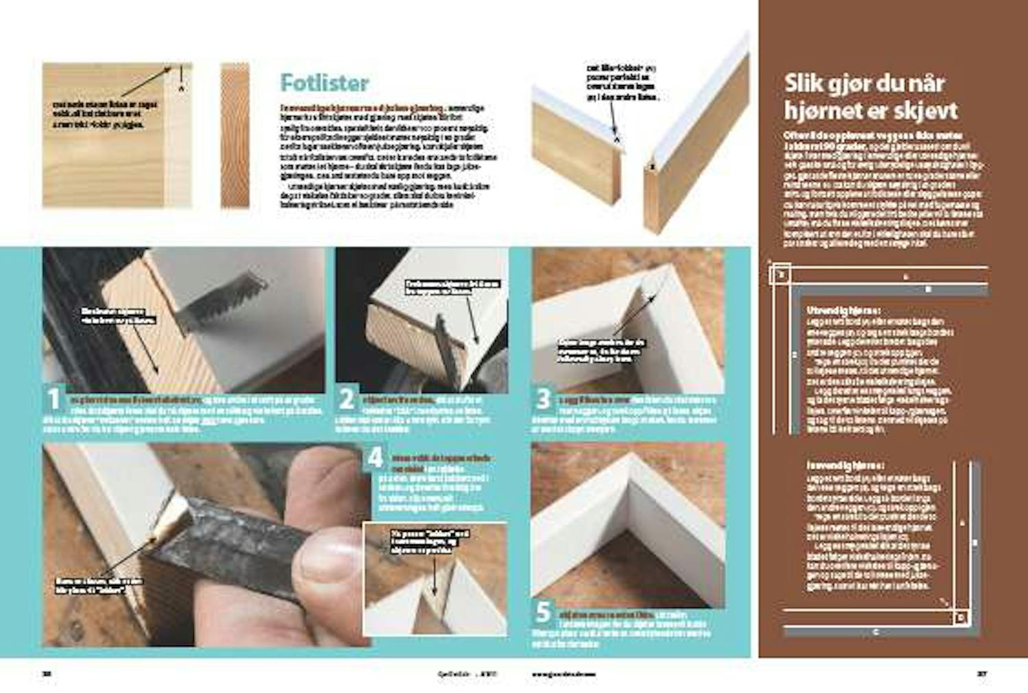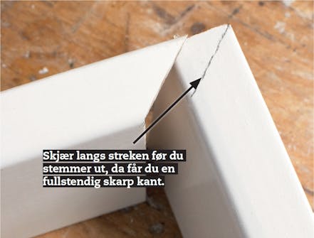 Legg fliken inn over den listen du skal støte inn mot veggen, og strek opp fliken på listen. Skjær deretter med en hobbykniv langs streken, før du stemmer ut med et skarpt stemjern.