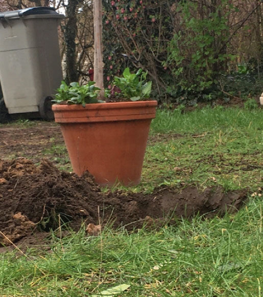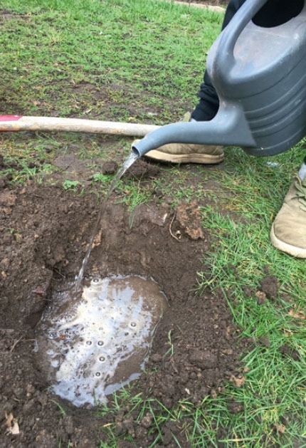 11. Sett treet i samme høyde som det har stått i potten - altså i den høyden du kan se som en fargeforskjell nederst på stammen.
