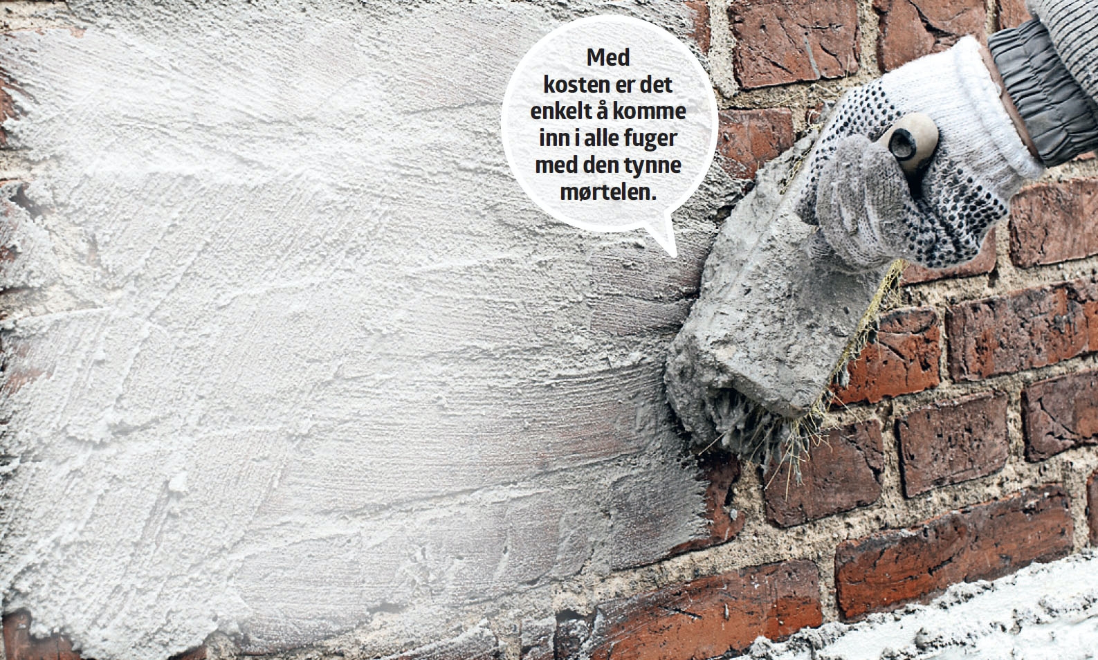 Har du forgjeves forsøkt å vaske av det hvite saltuttrekket på murveggen med vann, så slutt å prøve. Salt holder nemlig på vann - og det er ikke smart å få inn i murveggen. Bruk i stedet en hard børste til å børste vekk saltet med.