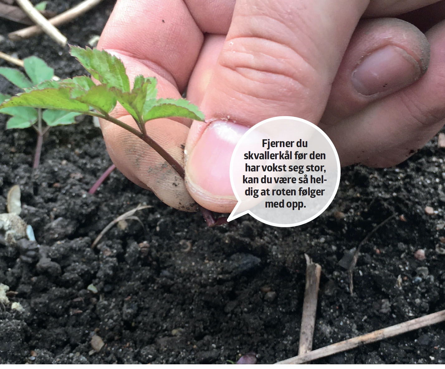 Skvallerkål er uten tvil en av de mest forhatte ugressplantene - og det med god grunn. Den seiglivede planten sprer seg nemlig både med rotskudd og ved å kaste frø, og den kan faktisk vokse videre selv om det kun blir igjen en liten rot på bare én centimeter. Den mest effektive måten å fjerne skvallerkål på, er ved å fjerne alle røttene. Det er dog en stor jobb. Orker du ikke det, kan du nøye deg med å fjerne den delen av skvallerkålen som stikker opp av bakken. Det hemmer plantens vekst og sørger for at den ikke sprer seg på langt nær så mye og ikke kaster nye frø.