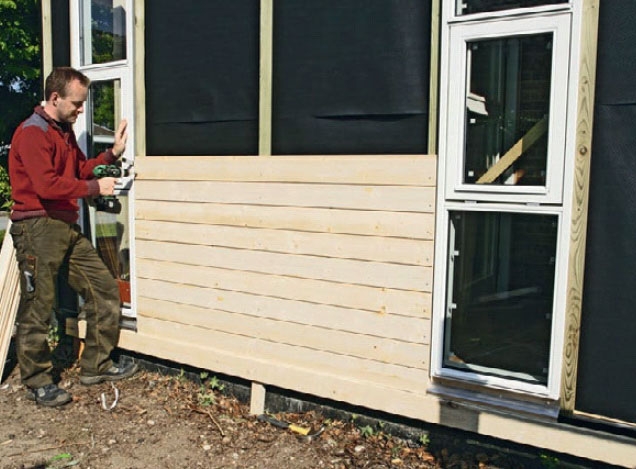 På vegger med liggende kledning er det riktig å starte nedenfra. Et godt tips er å bruke tid på å få det nederste bordet helt i vater. Sitter det først snorrett, er det bare å jobbe deg stille og rolig oppover med de resterende kledningsbordene. Sitter det nederste bordet derimot ikke i vater, vil skjevheten bli med hele veien opp til det øverste bordet. Det gjør jobben vanskelig, og det ser ikke bra ut.