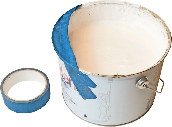 Vil du gjerne slippe å åpne alle malingsspannene for å se hvor mye maling de inneholder, kan du gjøre det til en vane å sette et stykke maskeringsteip utenpå spannet. Teipen markerer hvor mye maling som er igjen.
