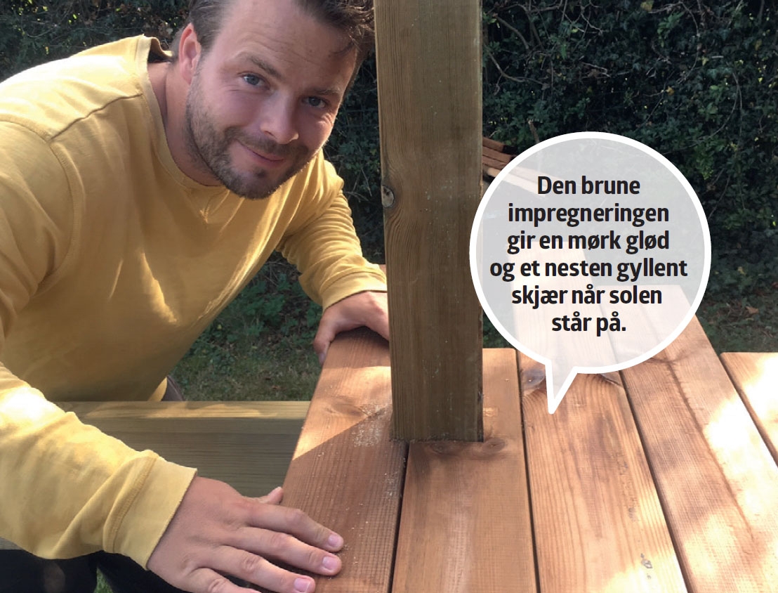 Vil du gjerne ha et mørkt og eksklusivt utseende av eksotiske tresorter som jatoba og ipé uten å betale hva det koster, kan du i stedet kjøpe brunimpregnert furu. Det koster en brøkdel, og selv om det ikke er ekte vare, kan det holde i opptil 20 år hvis det legges riktig og holdes unna vedvarende vann påvirkning. Får du behov for å skifte et bord, kan det gjøres både enkelt og rimelig.