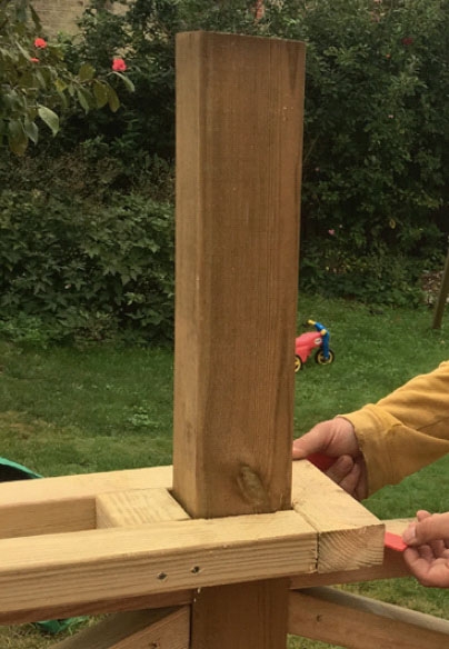 En rask og enkel måte å kappe stolper på, er ved å lage en mal av en lektestump. Med malen på plass og sagen hvilende på den, er det bare å la sagen spise seg gjennom stolpen.