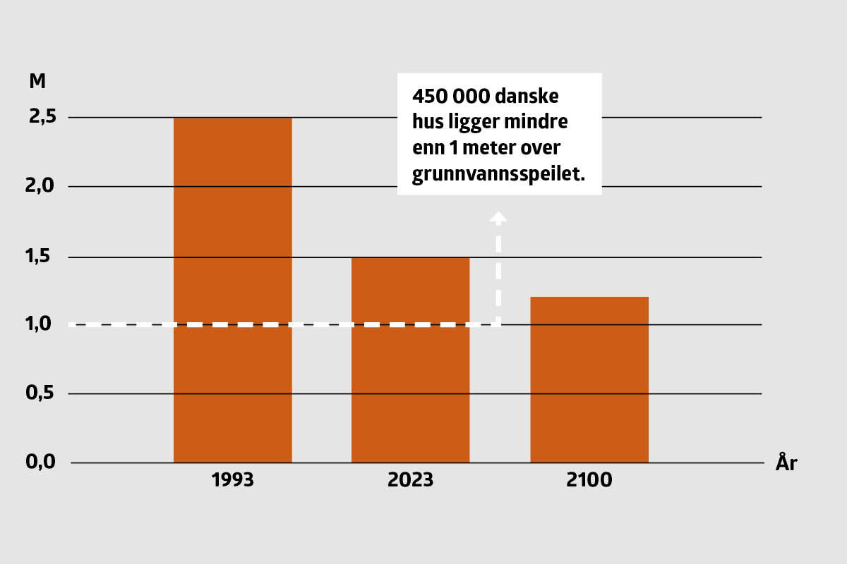 I et flatt land som Danmark, med ensartet geografi, er det enkelt å måle høyden på det såkalte grunnvannsspeilet.