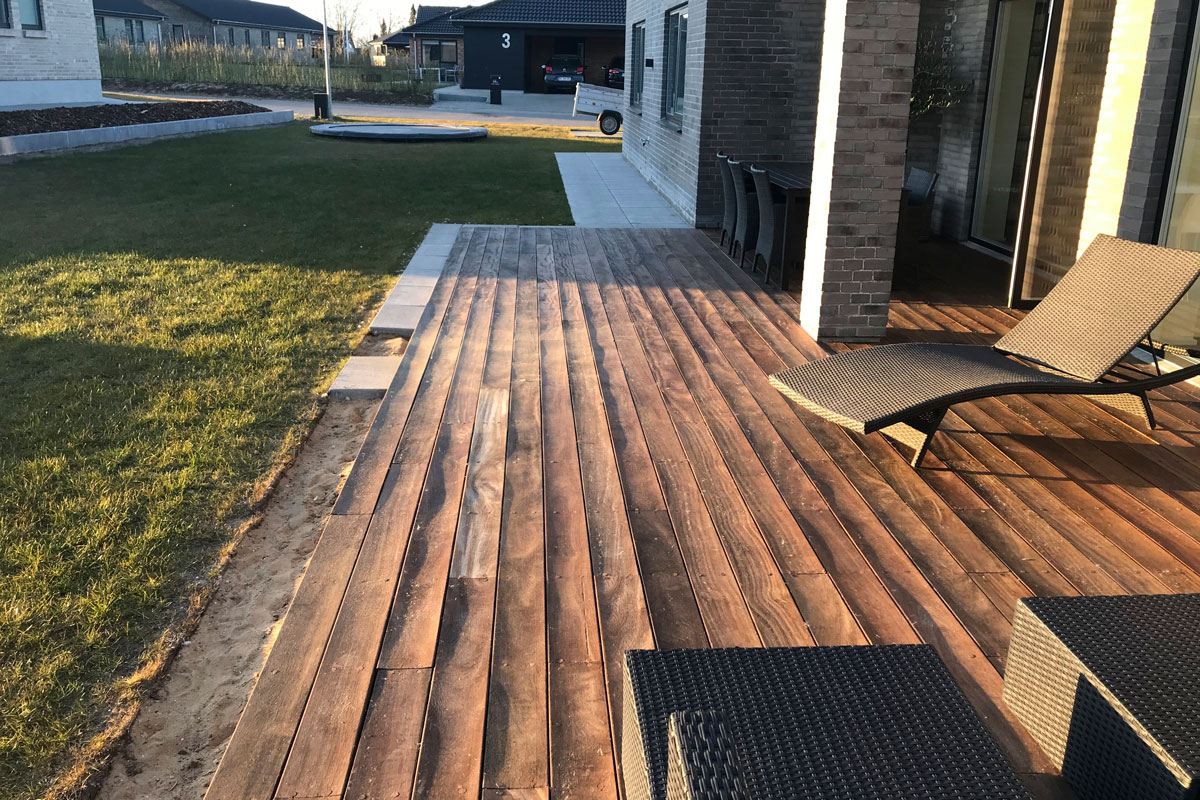 God avstand mellom terrassebordene er viktig. Og legger du tørre terrassebord en tørr sommerdag, må du regne med at de senere utvider seg. Særlig hvis det er hardtrebord.