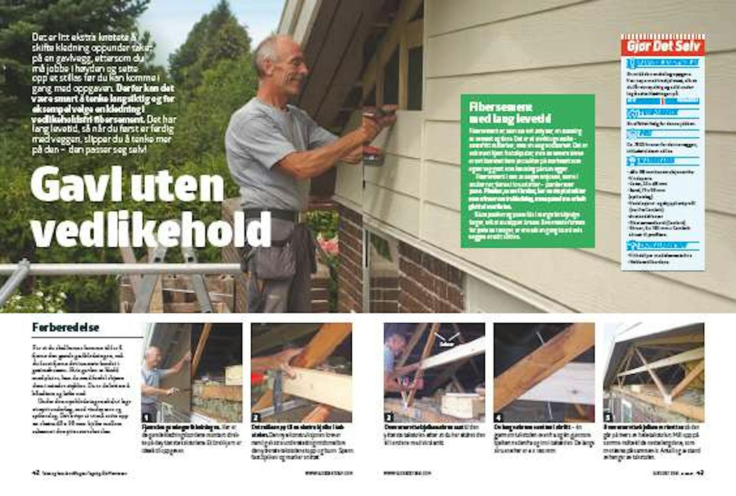 For at du skal kunne komme til for å fjerne den gamle gavlkledningen, må du først fjerne det innerste bordet i gesimskassen. Hvis gavlen er kledd med plater, kan du med fordel skjære dem i mindre stykker. Da er de lettere å håndtere og løfte ned.