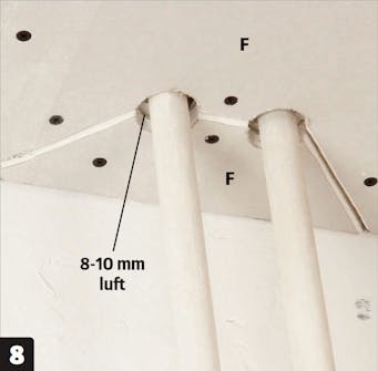 Monter et grovt tilskåret stykke gips bak radiatorrørene. Sørg for å holde luft rundt dem slik at rør og plater ikke gnisser mot hverandre.