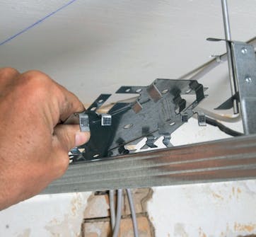 Monteringsbeslagene trykkes på plass i bæreskinnene for hver 30 cm. Kommer de i veien for en spotlight, kan du bruke ei ekstra mellomskinne og forskyve dem slik at avstanden fortsatt er høyst 30 cm.