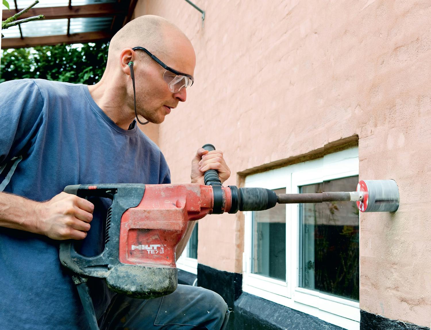 Med en kraftig borhammer og en solid hullsag kan du bore deg gjennom en murvegg. Både maskin og hullsag kan leies for rundt et par hundrelapper.