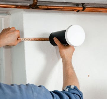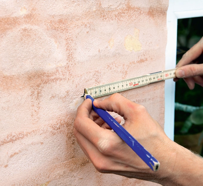 Bor evt. fra innsiden med et langt søkebor gjennom veggen hvis du er usikker på om du har målt rett. Det kan f.eks. skje om du ikke har et vindu å måle etter.