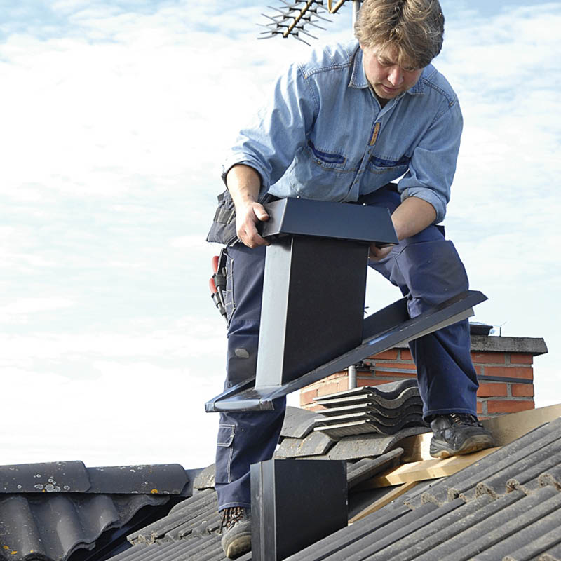 Sett på den ytre delen av takhatten. Legg tilbake takstein, og tilpass dem og takhatten til hverandre, slik at taket igjen er helt vanntett.