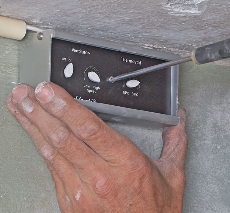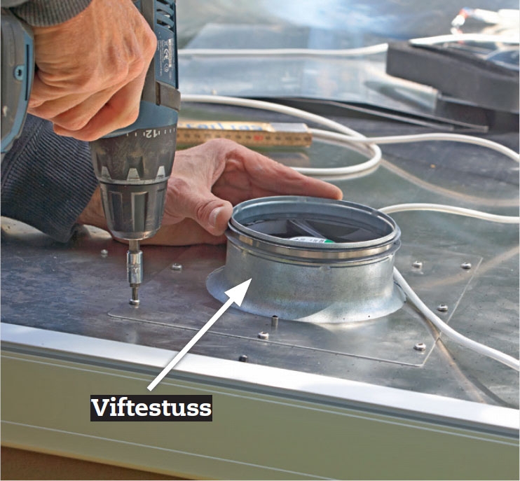 Når hullet i muren er boret, stikkes røret med viften inn på plass. Ledningen trekkes deretter til det stedet hvor styringen skal plasseres.