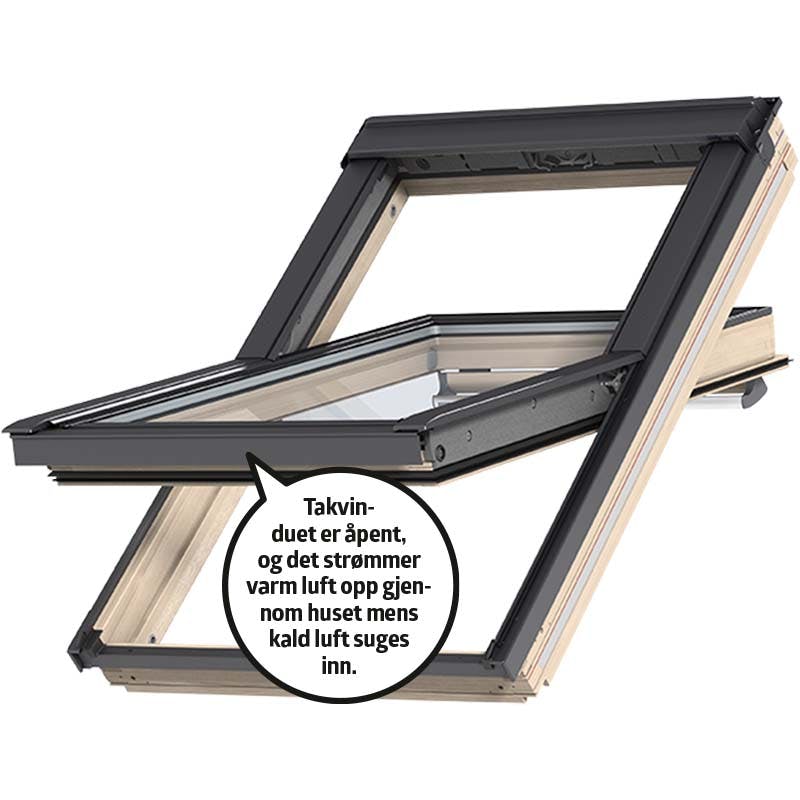 Akkurat som et godt gjennomtrekk, er skorsteinseffekten effektiv og kan fikse utluftingen veldig raskt. Det er likevel viktig å huske at for eksempel et takvindu ikke skal stå åpent i lengre perioder på den tiden av året du fyrer i huset. Da risikerer du nemlig å kjøle ned huset, sløse bort energi og dermed kaste penger ut av vinduet. Bokstavelig talt.