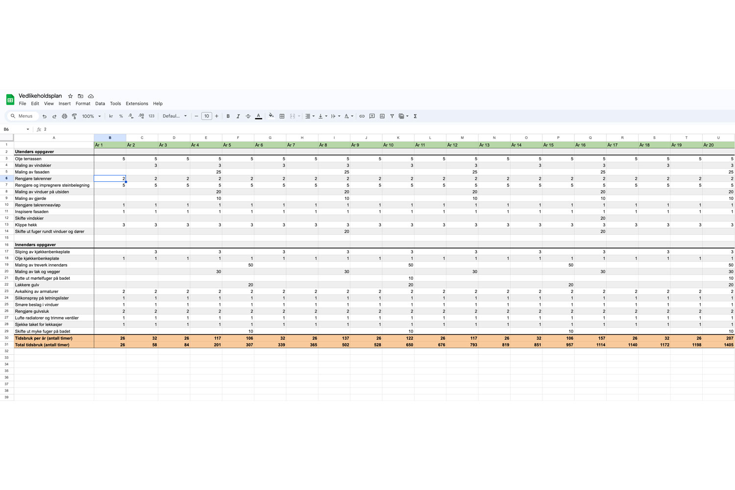 Vedlikeholdsplanen som du kan laste ned på denne siden, er ment som en mal. Du kan selvfølgelig legge til og fjerne oppgaver for å tilpasse planen til dine behov.
