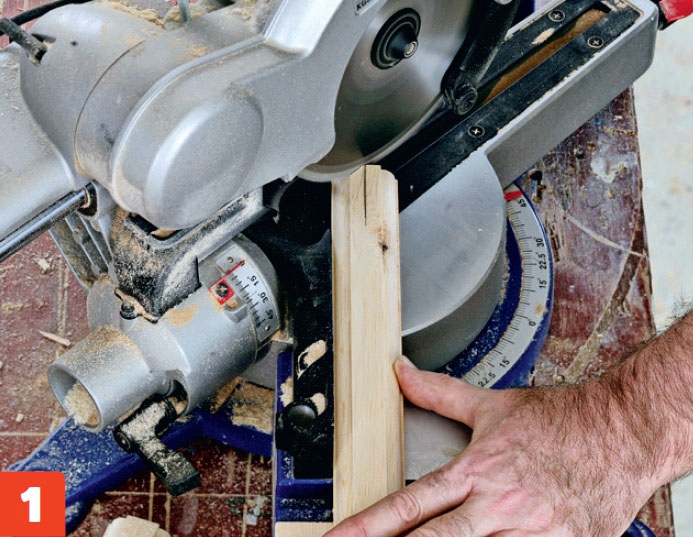 Sprossene kappes til. I den ene enden med gjæring, der sprossene skal møtes. I den andre enden kappes de vinkelrett.