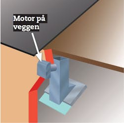 Motoren kan enten plasseres på ytterveggen, på loftet eller taket. Hvilken løsning som er best, avhenger av forholdene hjemme hos deg.