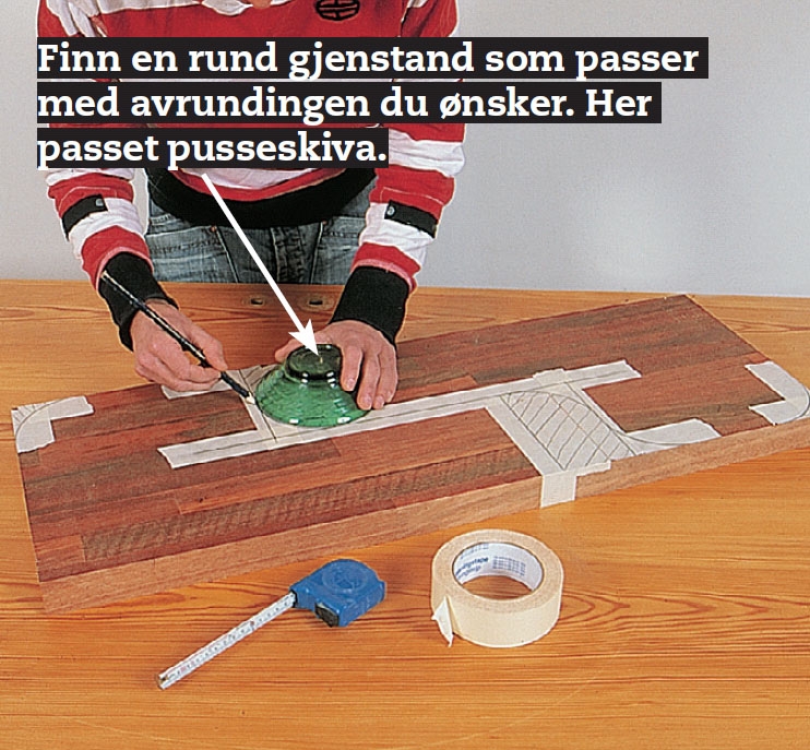 Legg trinnplata på noen klosser slik at bladet på stikksaga ikke hakker ned i bordet. Skjær ut trinnene.