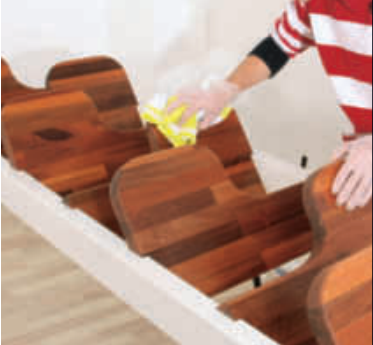 Klossene som her er 17 cm høye, settes på begge vangene mellom hvert trinn. Klossene limes og skrus fast til vangene. Vær klar over at du skal bruke klosser til begge vangene, og at de er speilvendte i forhold til hverandre.