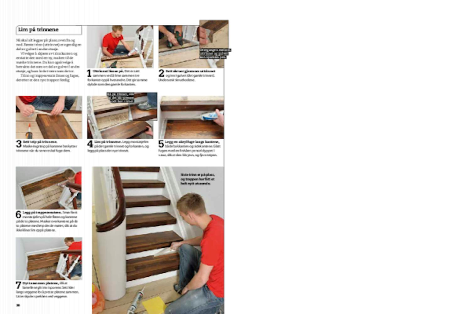 Lim på trinnene. Legg montasjelim på det gamle trinnet og forkanten, og legg på plass det nye trinnet.